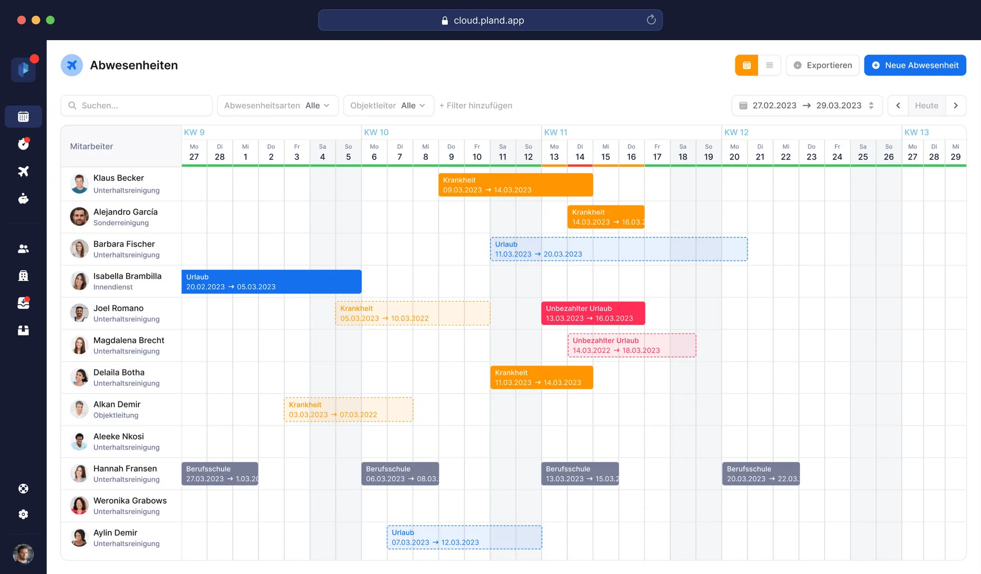 Zeitgemäße Systeme beschränken sich nicht mehr auf reine Dienstplanung. Erwartet werden integrierte Funktionen für Zeiterfassung, Objekt- und Mitarbeiterverwaltung, Kommunikation, Dokumentation und Reporting. Je nach Ausrichtung kommen Lohnexporte, Bedarfsermittlung, Aufgabenmanagement oder KI-gestützte Prognosen hinzu.